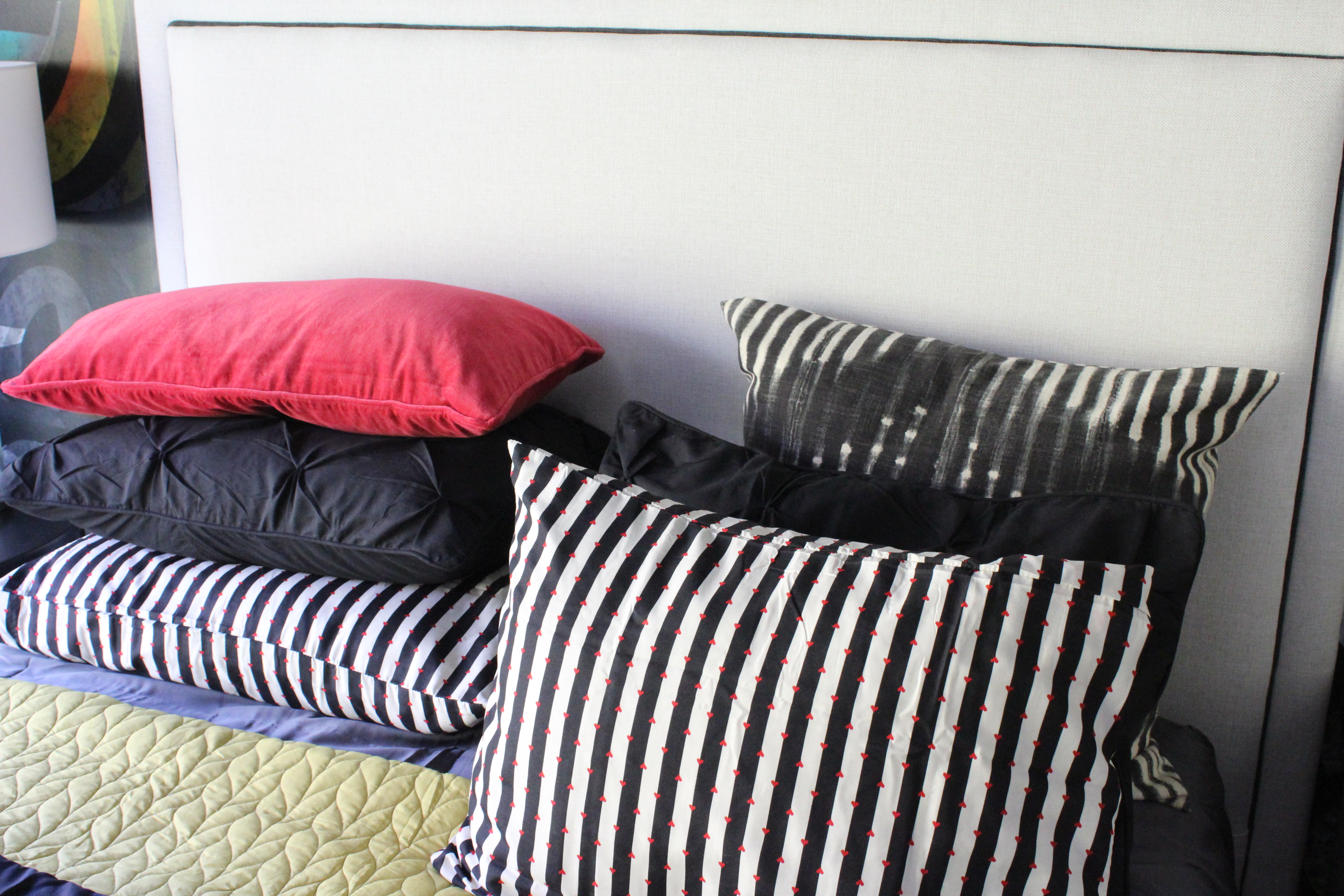Initially, Miss K said she wanted a black , white, and red color scheme and all I could think of was the roaring 80’s with black leather sofas and red lacquered tables. Uuum-No. I was relieved to learn she only wanted a tiny bit of red in small doses she could change out easily. Thank the design gods!