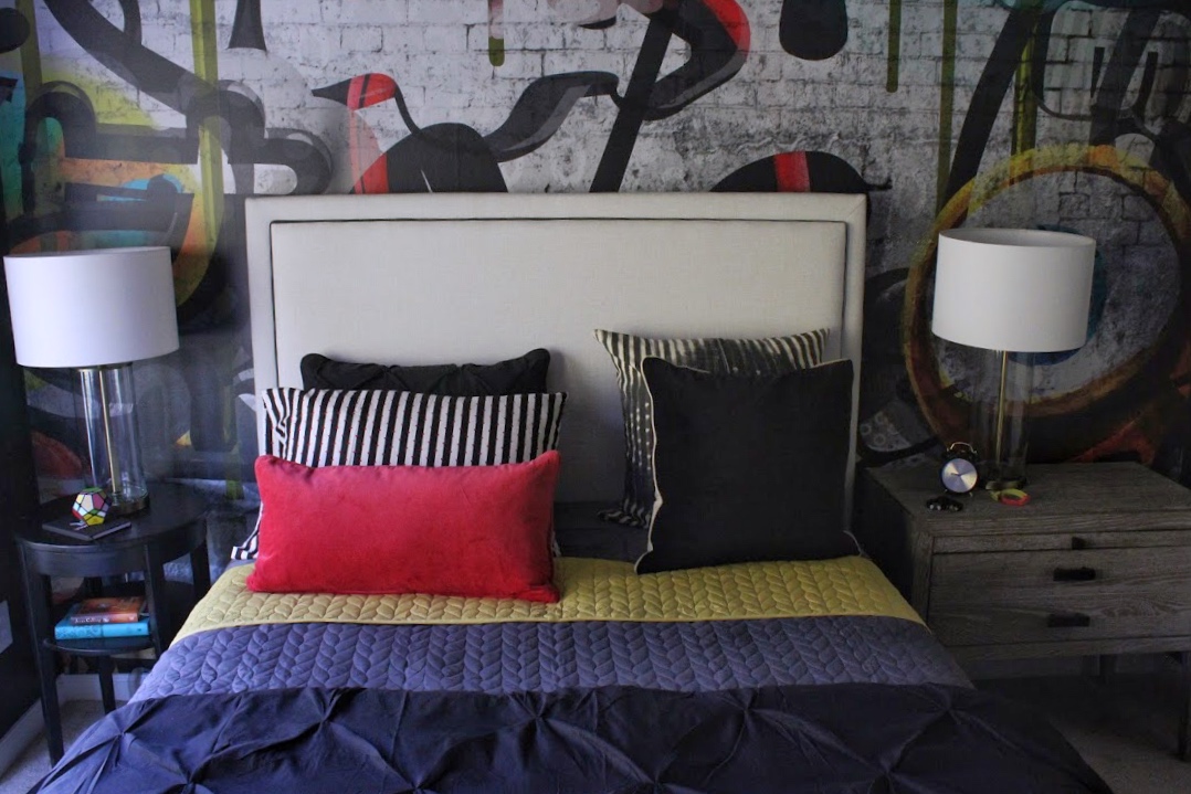 Elle the room came out amazing! I love the graffiti wall. Great use of color and unexpected elements.